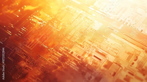 Complex pattern of electronic microchips with highlighted pathways, suitable for backgrounds related to AI, computing, and digital innovation