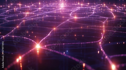Complex System Visualization: Interconnected Nodes Glowing with Pulsating Light