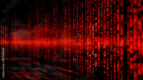 composition featuring vibrant red binary data displayed against a computer screen background, evoking the iconic Matrix style. Generative AI