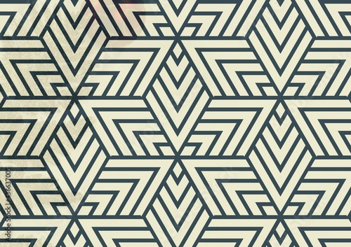 Composition of angular geometric overlapping black line pattern on off-white background