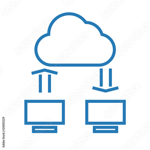 Computer and cloud storage sign. Information exchange sign
