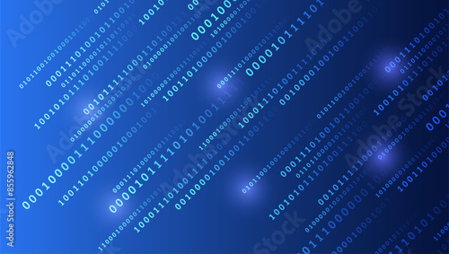 Computer background of numbers. Analytics, sorting, structuring, information transfer. Blue background with data flow. Binary code, artificial intelligence. Program code.