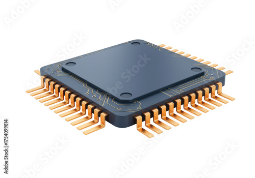 Computer chip isolated on white, microchip component for electronics and technology applications in PNG format