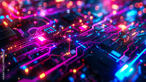 Computer chip with colorful background. Abstract background. Copy space.