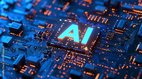 computer circuit board with AI sign.