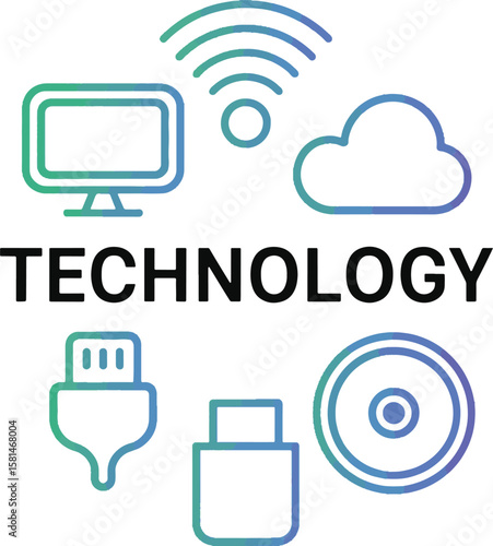 Technology Icons with Cloud and Computer Symbols