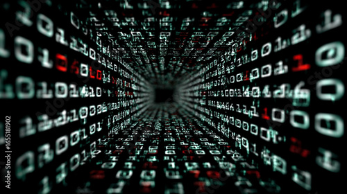 Computer code concept with 3d digital binary code background, futuristic technology theme, abstract data visualization, ideal for tech, programming, and digital projects.