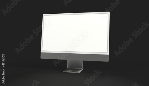 Computer display mock up with blank white screen. Stylish desktop computer mockup 3D