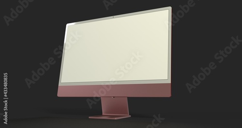 Computer display mock up with blank white screen. Stylish desktop computer mockup 3D