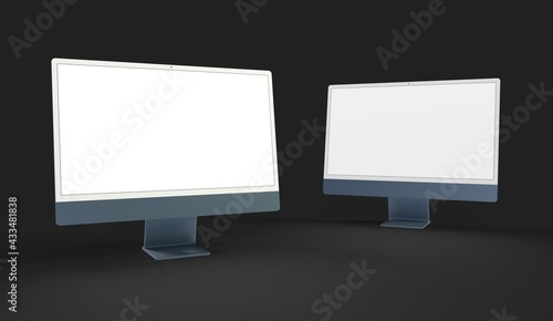 Computer display mock up with blank white screen. Stylish desktop computer mockup 3D