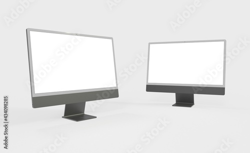 Computer display mock up with blank white screen. Stylish desktop computer mockup. new