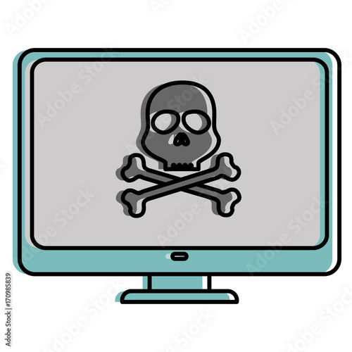 computer display with skull virus alert vector illustration design