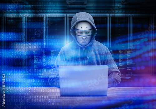 Computer hacker in server room