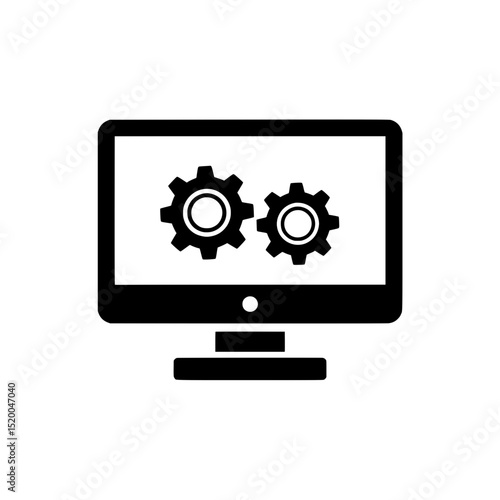 Computer Icon with Gears on Screen Symbolizing Settings, IT or Technical Maintenance