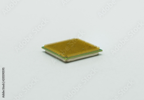 Computer microprocessor CPU close up, isolated on white background with clipping path.