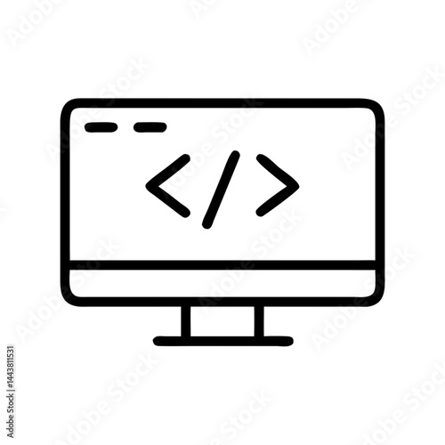 Computer Monitor Displaying Coding Symbols in Minimalist Style