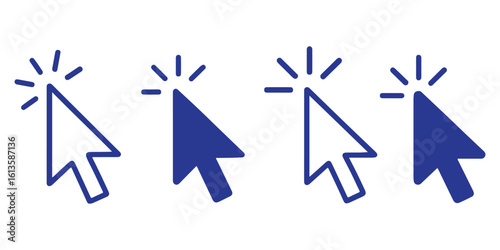 Computer mouse click cursor arrow icons set. Clicking cursor. Hand cursors icons click set. Pointer click icon. Loading icon on transparent background