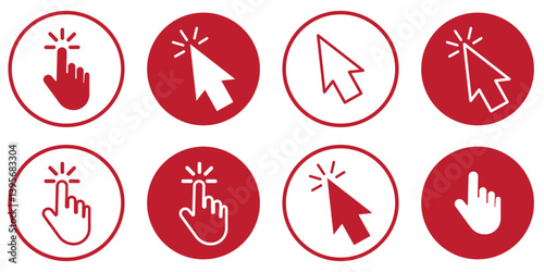 Computer mouse click cursor. Load symbol. Pointer cursor and loading icon. Cursors icons click set. Clicking cursor, pointing hand clicks icons.