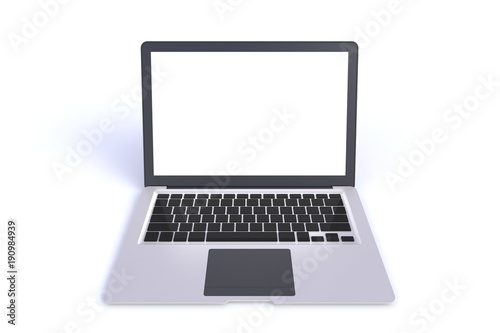 Computer Network Connection Digital Technology, Isolated laptop with empty space on white background, 3D rendering