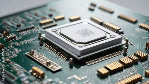 Computer Processor on Green Circuit Board with Electronic Components
