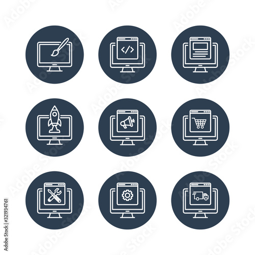 Computer Programming Icons Set Programmer Developer Stock Circle Line Icon Set Vector