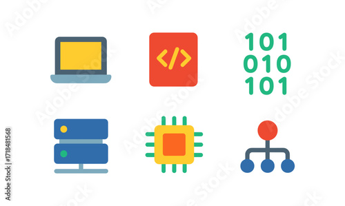 Computer science icons for tech design projects - technology, programming, and data visualization elements