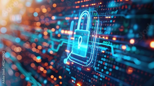Computer screen displaying encrypted data transmission, encryption, secure data storage