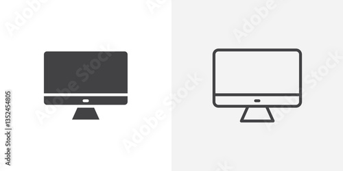 Computer screen icon vector set in black flat and line stroke style