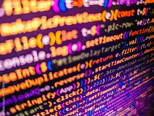 Computer screen shot with binary code and smartphone, great concept for technology computer and online security. Web abstract programming and created virus on laptop screen