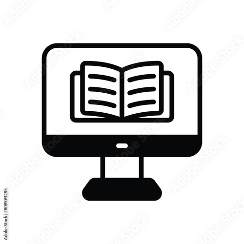 Computer screen with books vector icon