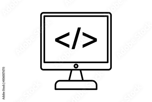 computer screen with code icon. icon related to computer. suitable for web site, app, user interfaces, printable etc. line icon style. simple vector design editable