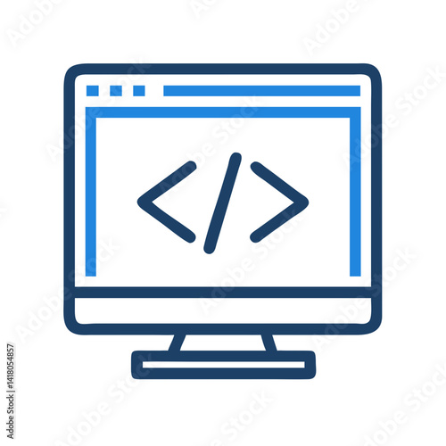 Computer Screen with Code Icon Representing Web Development and Programming