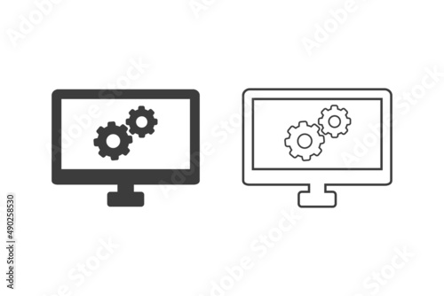 Computer Setting icons flat design or Computer Setting icons. 2 style of computer setting icons isolated on white background.