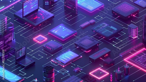 Computer technology banner. Computer technology banner showing the process of creating, optimizing, debugging code for laptops, phones, tablets. Computer technology banner showing the development and