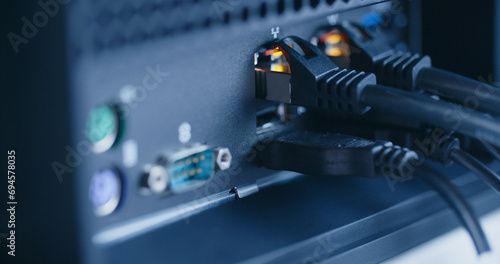 Computer with an active dual network connection and blinking LEDs