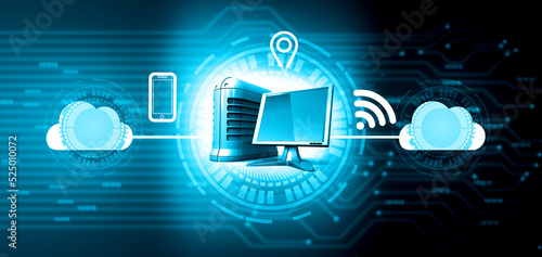 Computer with cloud network. Cloud computing concept. 3d illustration..