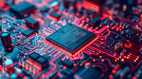 Computing processor, CPU, microchip and electronic circuit board. Advanced technology conceptual background