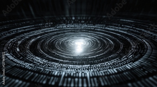 Concentric rings of glowing binary data spin around a central symbol of encryption such as a key or lock visually representing the concept of layered security as data flows seamlessly