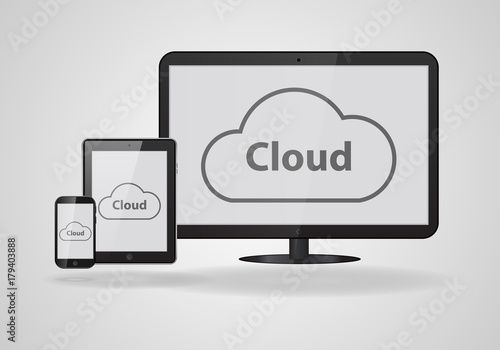 Concept of cloud technologies: Personal computer, tablet, phone on a white background.