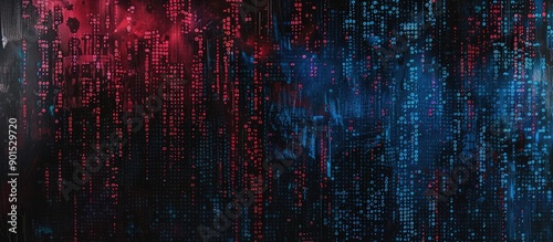 Concept of computer issues represented by blue and red binary code on a black background with the image including copy space