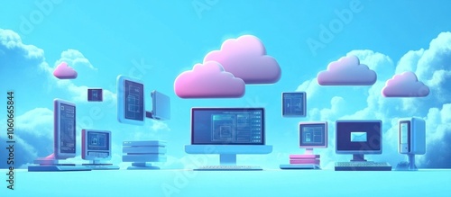 Concept of Global computing services. Cloud correlation of gadgets and computers