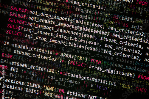 concept of running sql database code on computer monitor