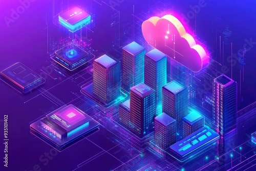 Concept Serverless Technology, Hybrid Cloud Network, Digital Infrastructure, Modern Equipment. with generative ai