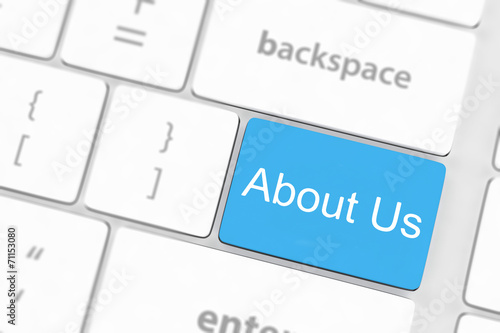 concepts of 'about us', message on keyboard enter key.