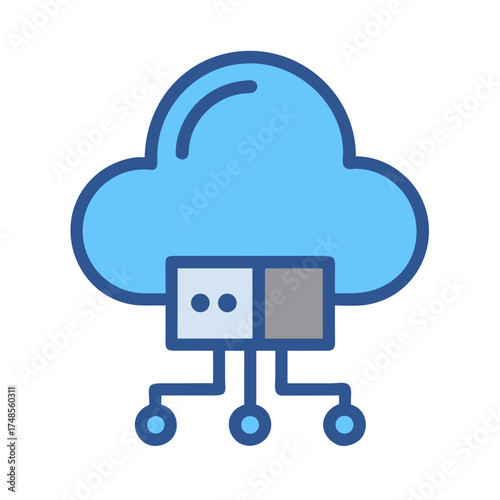 Conceptual cloud computing graphic representing data connection and network solutions, modern design