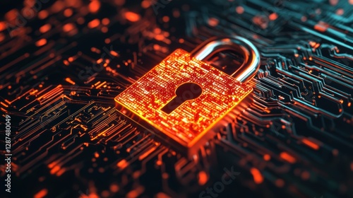 conceptual cyber security lock system with glowing elements and circuit patterns