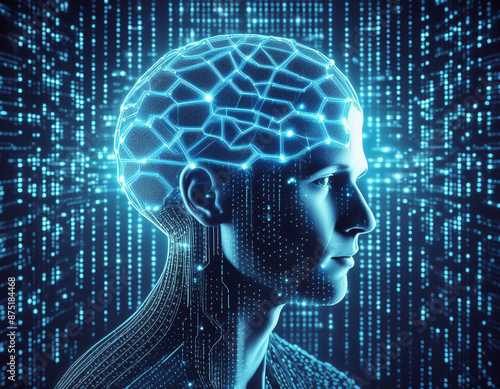 Conceptual Hacker's Brain with Neural Pathways Illuminated by Streams of Binary Code.......