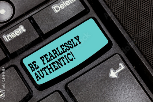 Conceptual hand writing showing Be Fearlessly Authentic. Business photo text send out targeted messages at designated times Keyboard key Intention to create computer message idea