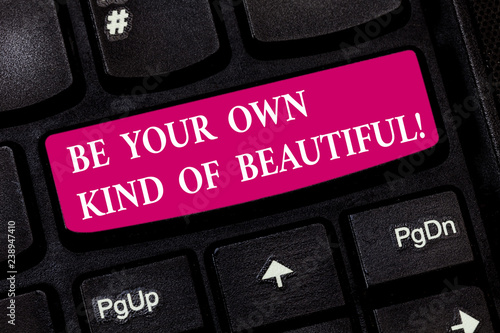Conceptual hand writing showing Be Your Own Kind Of Beautiful. Business photo showcasing Stay different a special kind of attractive Keyboard key Intention to create computer message idea
