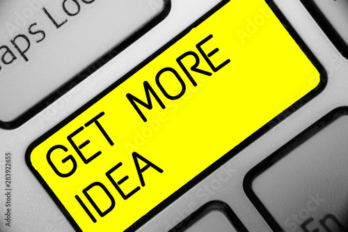 Conceptual hand writing showing Get More Idea. Business photo text Random Input Mind Map Picture Mock up Surveys Visualization Keyboard yellow key computer computing reflection document
